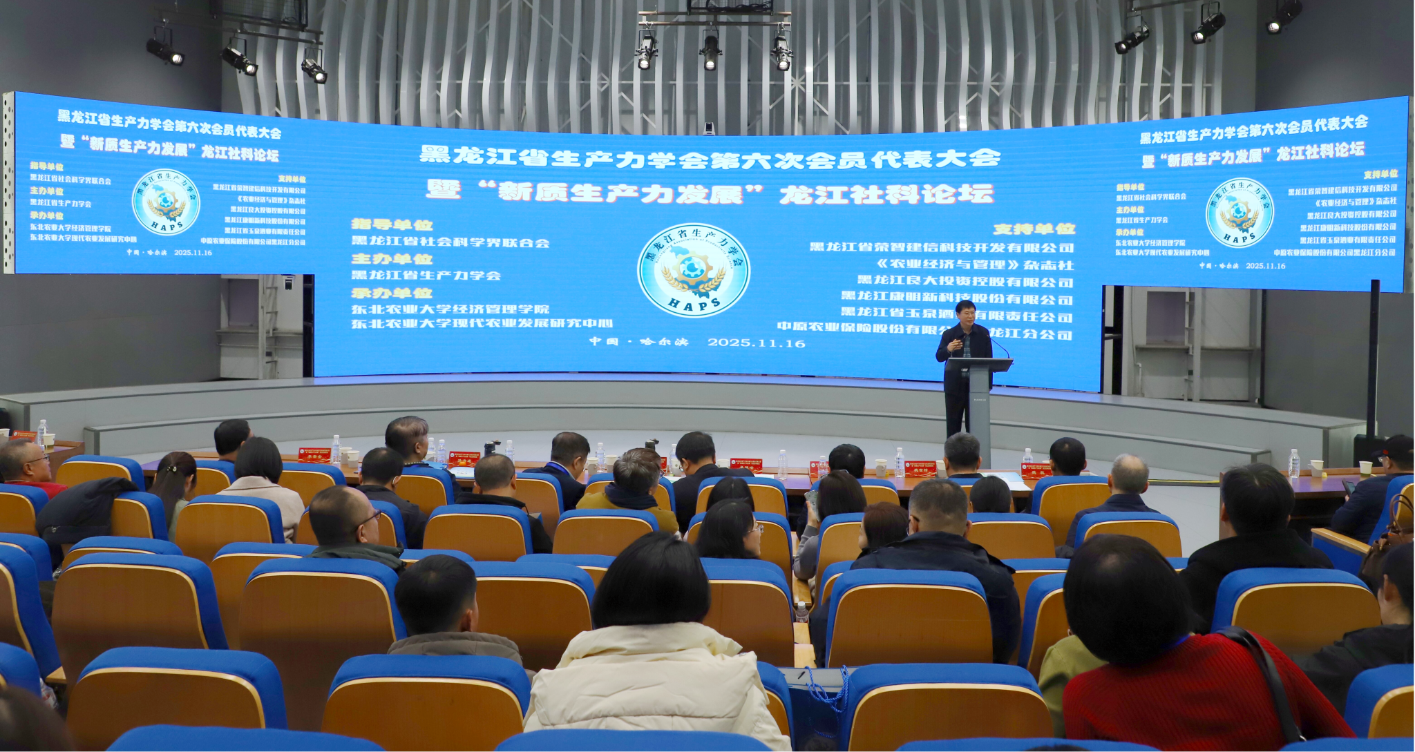 党的二十届四中全会将“新质生产力”提升至更加突出的战略位置,成为引领“十五五”时期高质量发展的核心引擎。为深入贯彻落实全会精神,11月16日,黑龙江省生产力学会第六次会员代表大会暨“新质生产力发展”龙江社科论坛在我校召开。来自省内高校、科研院所、企业界和有关事业单位的140余位会员代表齐聚一堂,为龙江“新质生产力发展”注入强劲动能。