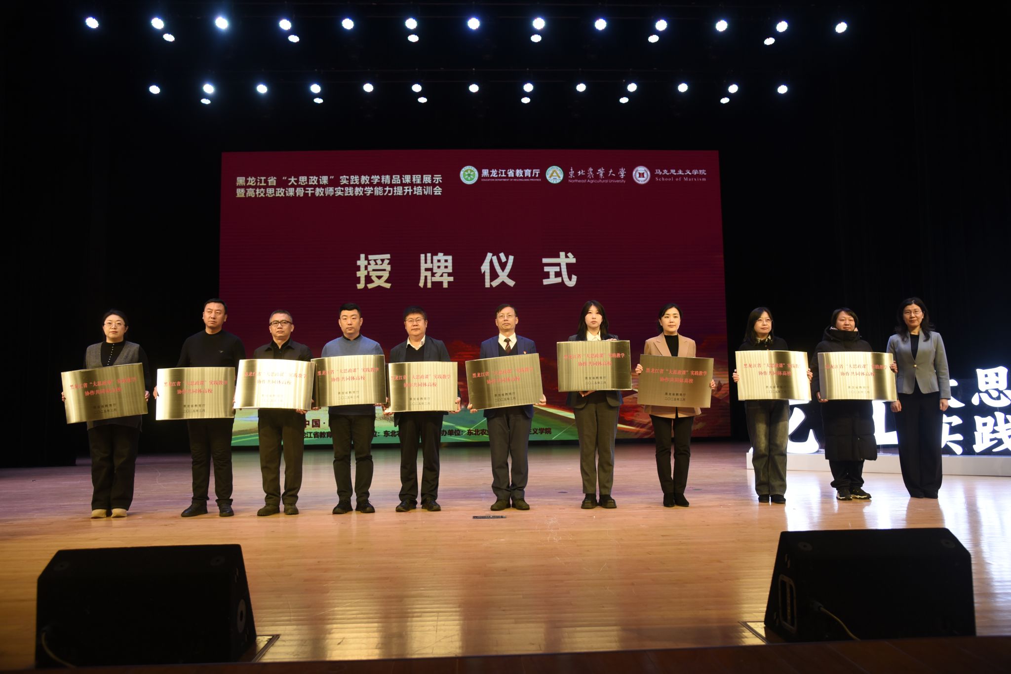 会上,程爽为协作共同体高校授牌;省教育厅思政处处长张爽为入选黑龙江省“大思政课”实践教学百节精品课程教师团队代表颁发证书。