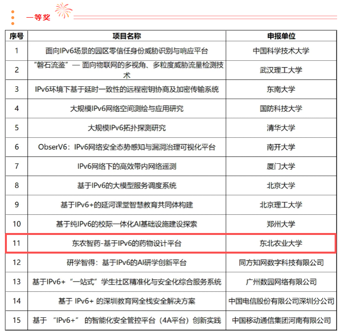 近日,第三届IPv6技术应用创新大赛科教赛道暨第八届下一代互联网技术创新大赛决赛在北京落下帷幕。由我校现代教育技术中心高级工程师周长建作为指导教师,工程学院硕士研究生刘禹彤,电气与信息学院本科生邱玥曦、佟佳树申报的项目《东农智药—基于IPv6的药物设计平台》荣获一等奖,实现该项赛事东北地区高校一等奖零的突破,这也是我校连续三届在此类赛事中获奖,总获奖数量达5项,位居全省第一。