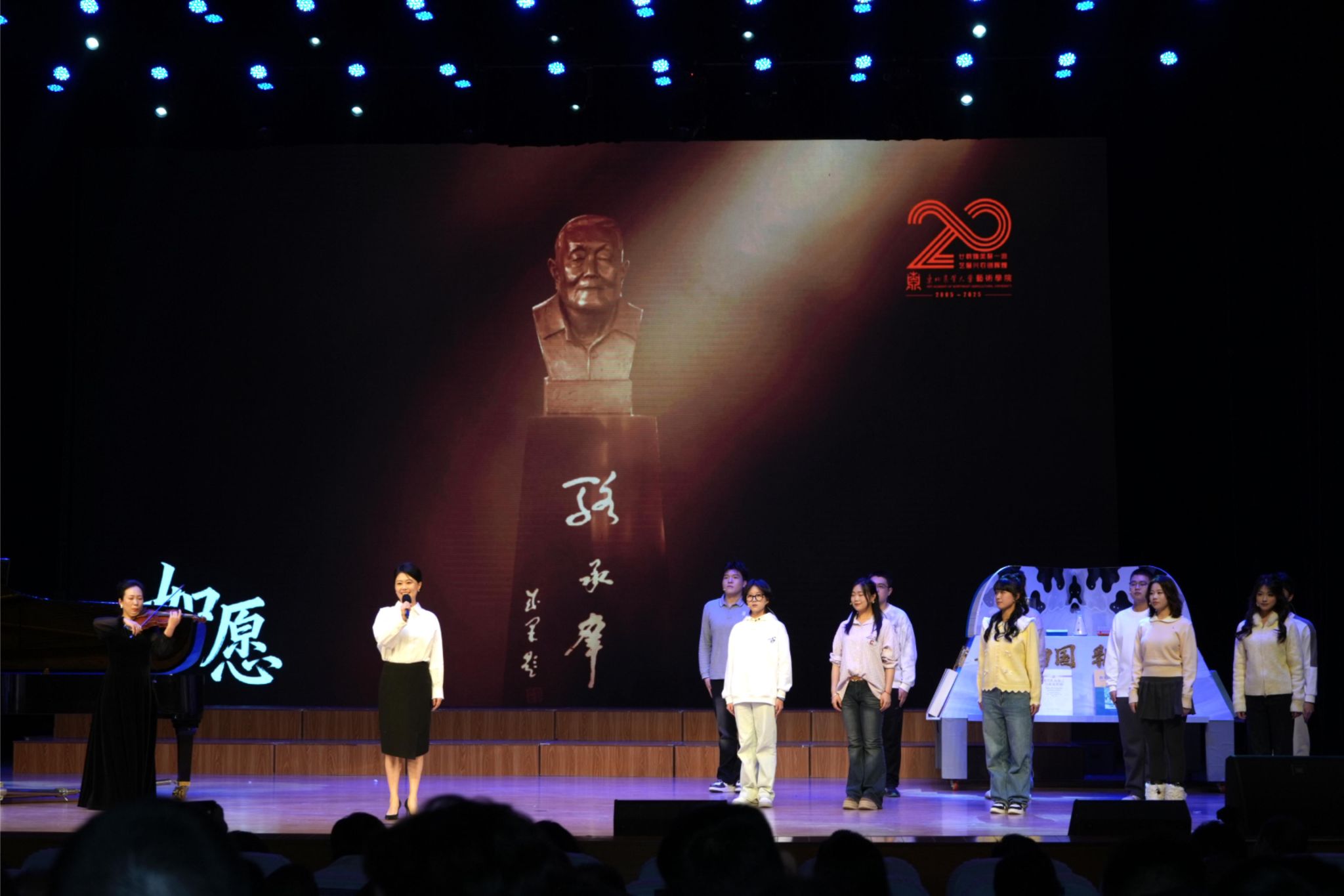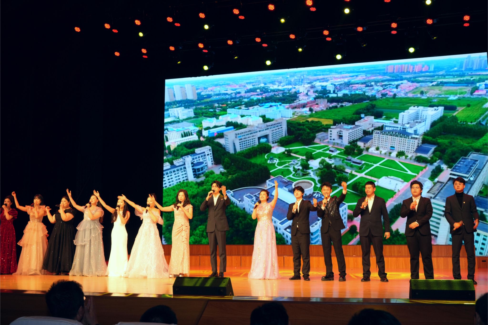 随后,学院建院20周年院庆文艺晚会为现场观众带来了一场视听盛宴,生动展现了学院的育人成果与精神风貌。学校后稷民族管弦乐团首次公演的民族管弦乐《后稷》既蕴含着对中华农耕文明始祖后稷的敬仰,又呼应了学校“强农兴农”办学特色,赢得全场阵阵掌声。歌曲《二十年后再相会》与民乐合奏《敦煌》邀请了学院毕业校友同台演绎,诉说着校友对母校的深情祝福。哈尔滨师范大学音乐学院院长刘臣演唱歌曲《一起走过天长地久》,表达了兄弟院校对艺术学院蓬勃发展的美好祝愿。曾获国家级展演大奖的舞蹈《额颞的鱼皮衣》唯美舒展、意蕴悠长,充分展现了民族文化的独特魅力。歌曲《再一次出发》旋律昂扬向上,传递出学院继往开来、勇攀高峰的奋进姿态。原创音舞诗剧《如愿》融合了舞蹈、歌曲、诗朗诵等艺术形式,创造性运用AI技术展现许振英、王金陵、骆承庠、秦鹏春等东农老一辈科学家、教育家的风采,让现场观众在科技与艺术的交织中,深切感受到东农精神的传承与赓续。最后,全体院领导登台演唱由学院教师原创的歌曲《春华正茂》,以饱满的热情唱响对家园挚爱与期许,展现了学院领导班子与师生同心同德、共谱新篇的凝聚力。