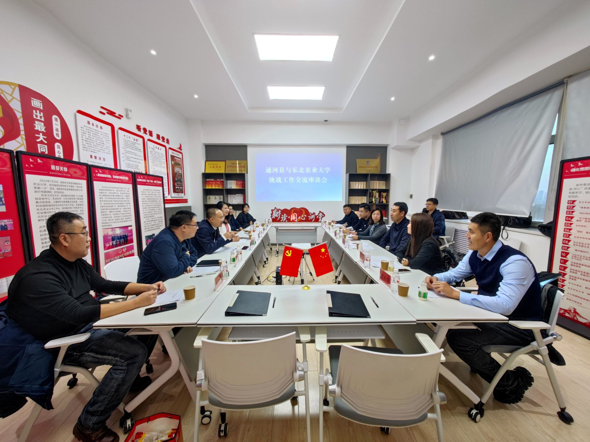 12月12日下午,通河县委统战部一行到我校开展统战工作调研座谈,双方以统战工作为切入点,围绕统战工作创新、农业科技转化、产学研融合等方面进行深入交流,并签署合作框架协议。通河县委常委、政法委书记、统战部部长陈建名,县政协副主席、工商联主席曲春林,相关工作人员及企业代表一行7人出席座谈会。我校统战部部长、省绿研院党委书记兼院长高放,统战部副部长孙晔,社会合作与成果转化中心(新农村发展研究院)副主任(副院长)常敬礼,食品学院、农学院、动物科学技术学院相关领域专家及相关工作人员接待并参与座谈。座谈会在学校党外知识分子活动之家举行。