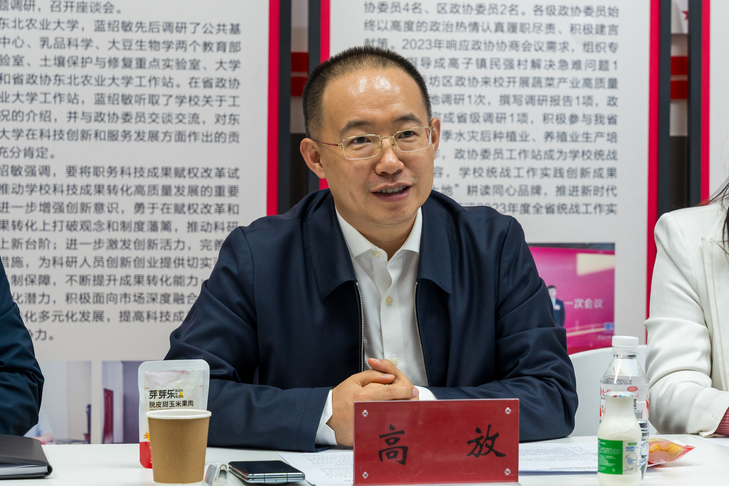 座谈会上,陈建名介绍了通河县基本情况,详细阐述了当地资源优势、特色产业布局及发展需求,为双方精准对接合作找准切入点。陈建名表示,本次合作将依托统战平台的桥梁纽带作用,希望我校统战部门协调相关领域专家,为通河县提供“点对点”技术支持与服务,确保合作精准落地、高效推进,助力通河县农业产业提质增效,推动高校科研成果转化落地,共绘产学研协同发展新蓝图。