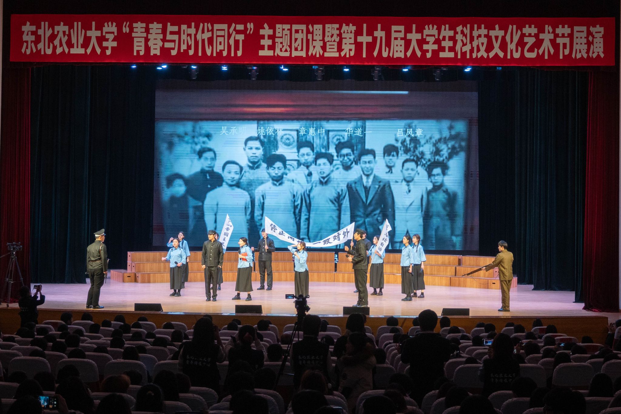 当《松花江上》的旋律响起,一位东农学子与革命先辈的跨时空对话拉开了展演的序幕,“那群光耀千秋的青年”从点燃觉醒的《火炬》,到全民抗战的《同行》,《征途》上他们为抗日战争和世界反法西斯战争胜利做出了不可磨灭的贡献。