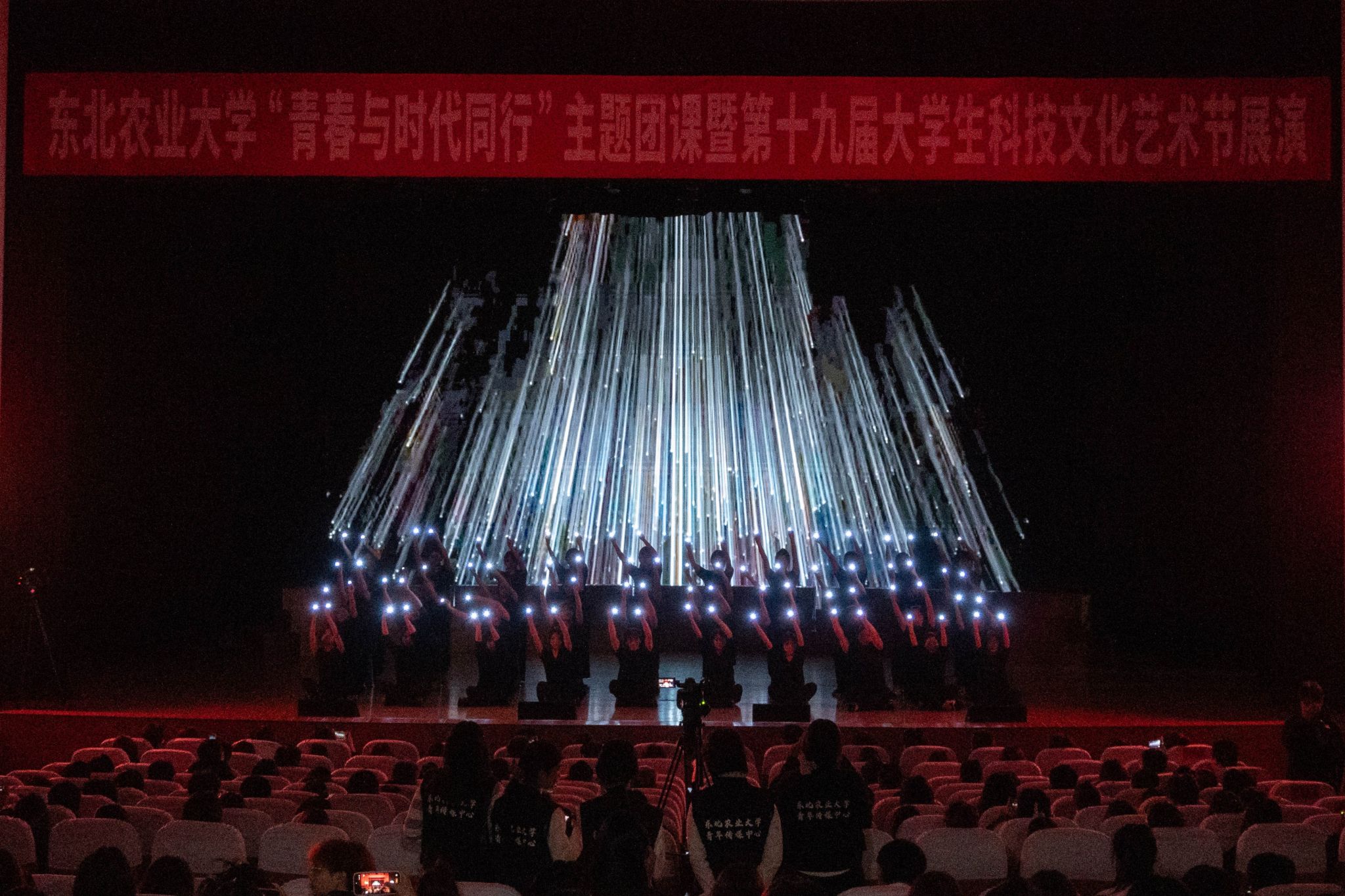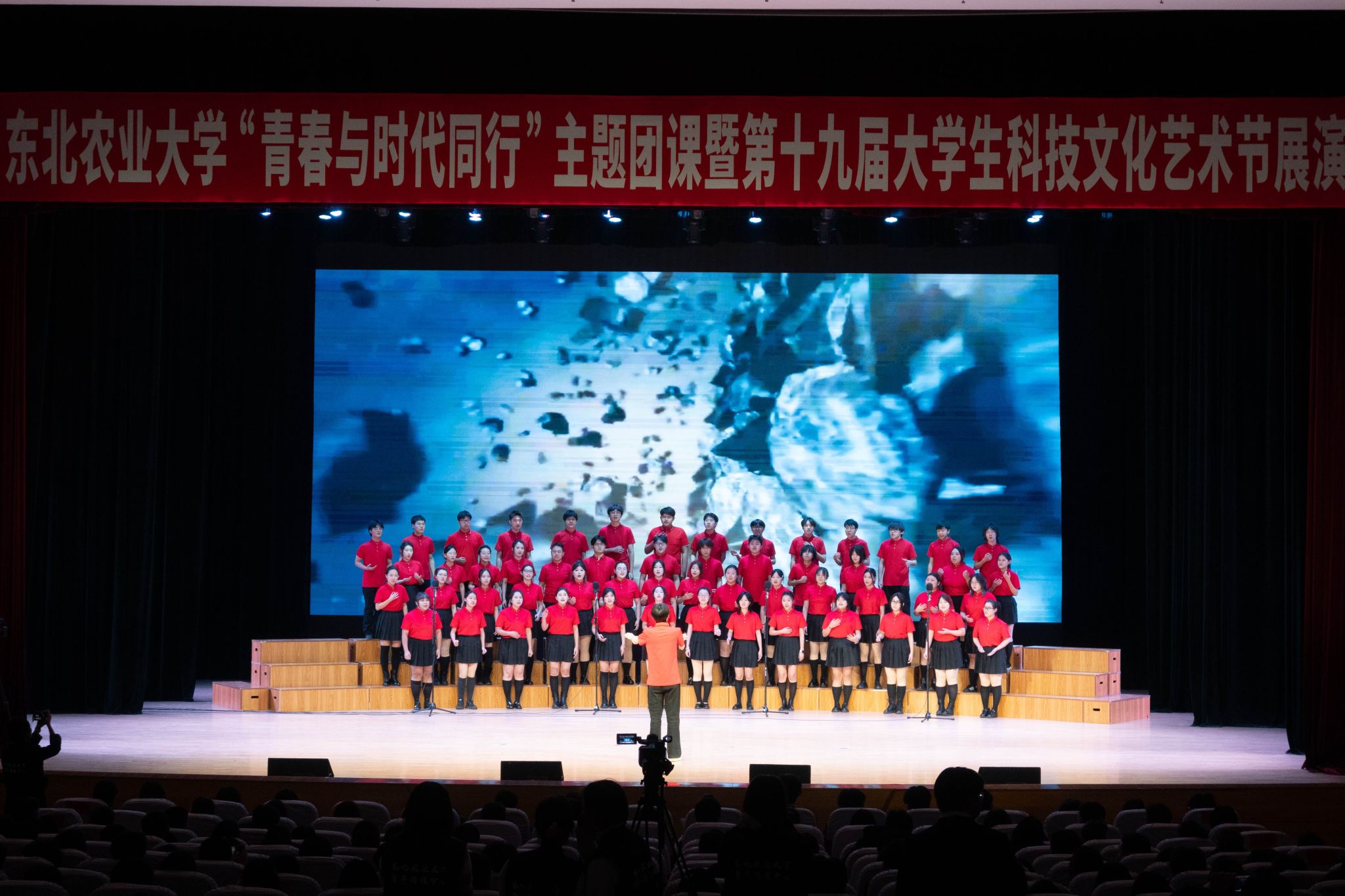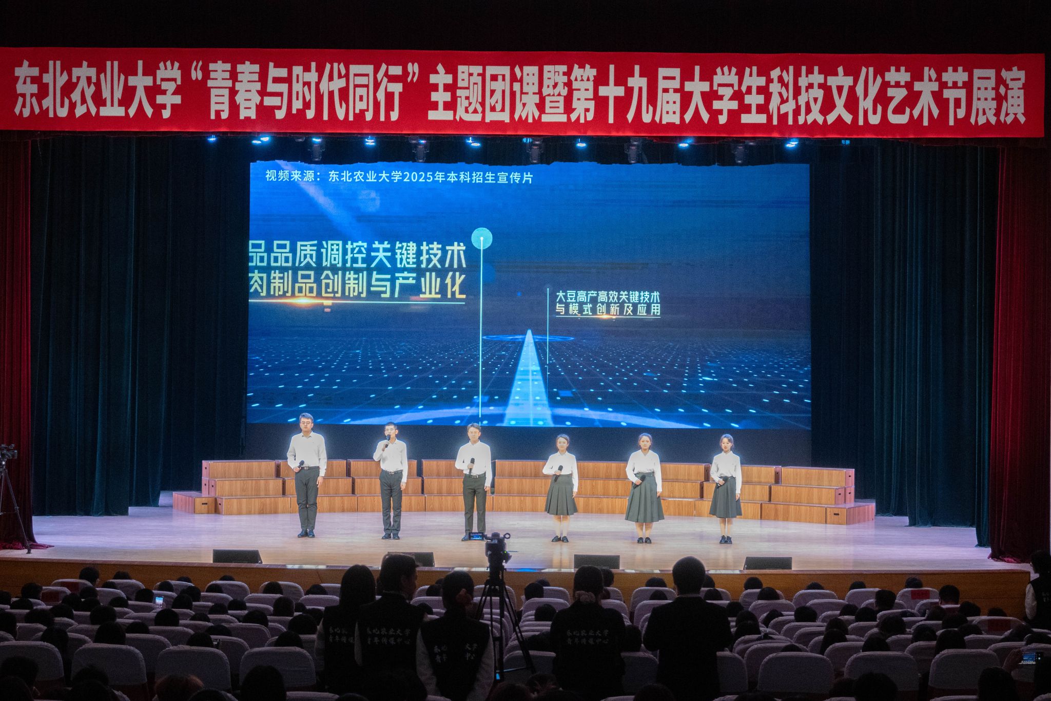 在《有我》的坚定信念中,“平视世界、开创未来的我们”在《跨越山河的奔赴》中,汇聚成奔涌向前的《浪潮》,展现了东农青年传承“薪火”,始终与时代同向、与祖国同行、用青春作答的“新我”担当。最后,全场师生用“我是东农人!我爱东农!我愿意东农好!”的铿锵作答,将整场活动的氛围推向高潮。