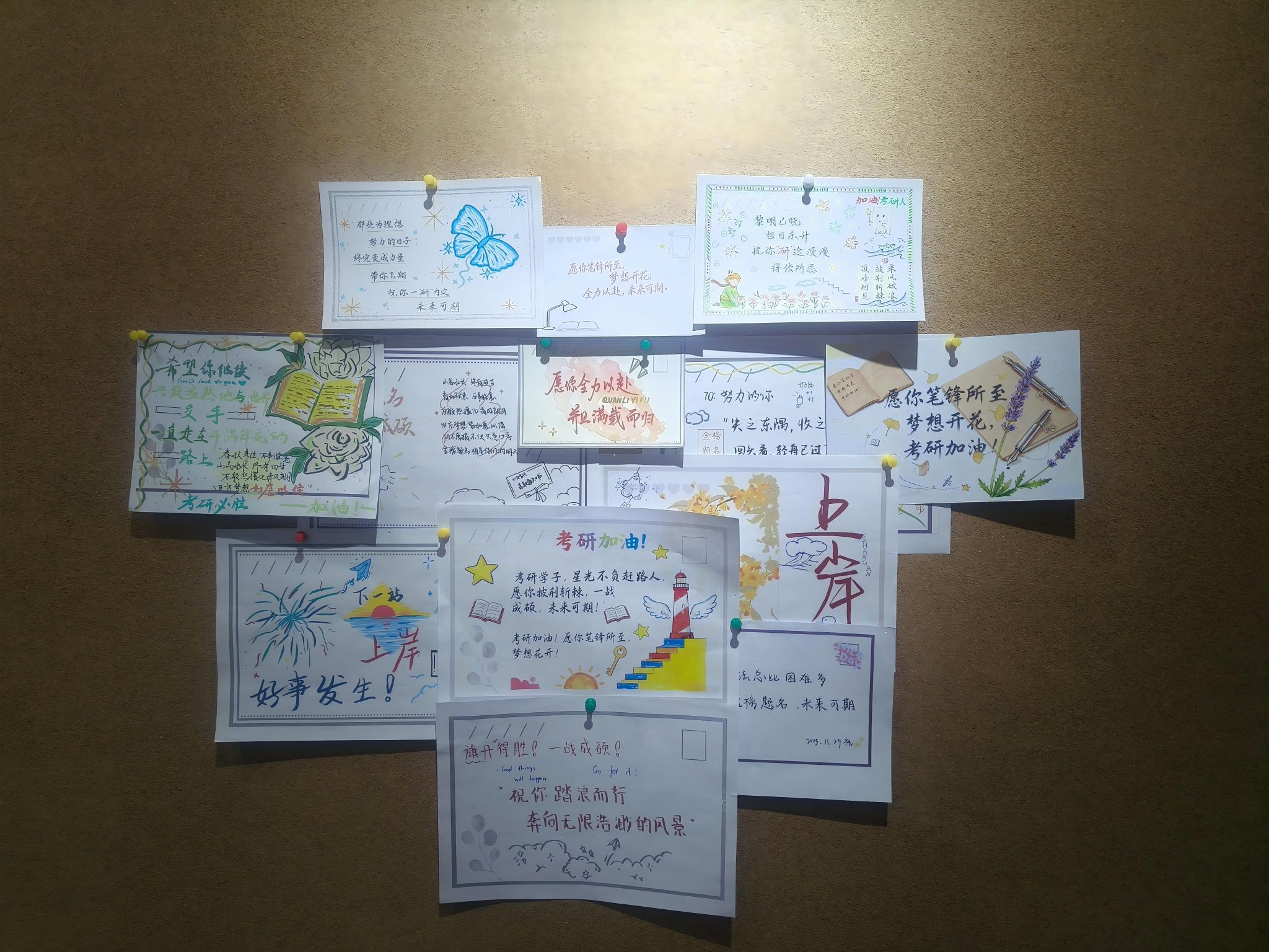 园艺园林学院举办考研解压活动,为考研学生送上文具礼包、盲盒、解压捏捏乐及暖心咖啡,通过趣味互动游戏舒缓压力,以星星纸承载正能量句子传递暖意;工程学院开展“情系学子,研途相伴”考研慰问活动,定制专属祝福卡片,发放实用考场礼包,为考研学生送上温暖与力量;水利与土木工程学院开展“一封来信,一份‘橙’功”考研暖心慰问活动,面向全院征集手写祝福信,并将承载着美好寓意的“橙子”与书信一一送至考研学生手中;公共管理与法学院开展“研途有你,暖语同行”—考研祝福征集活动,帮助考研学生坚定信心,缓解考试压力,传递温暖力量;国际文化教育学院为考研学生布置祝福签名墙,将美好祝愿镌刻于墙面,助力考研学生圆梦。