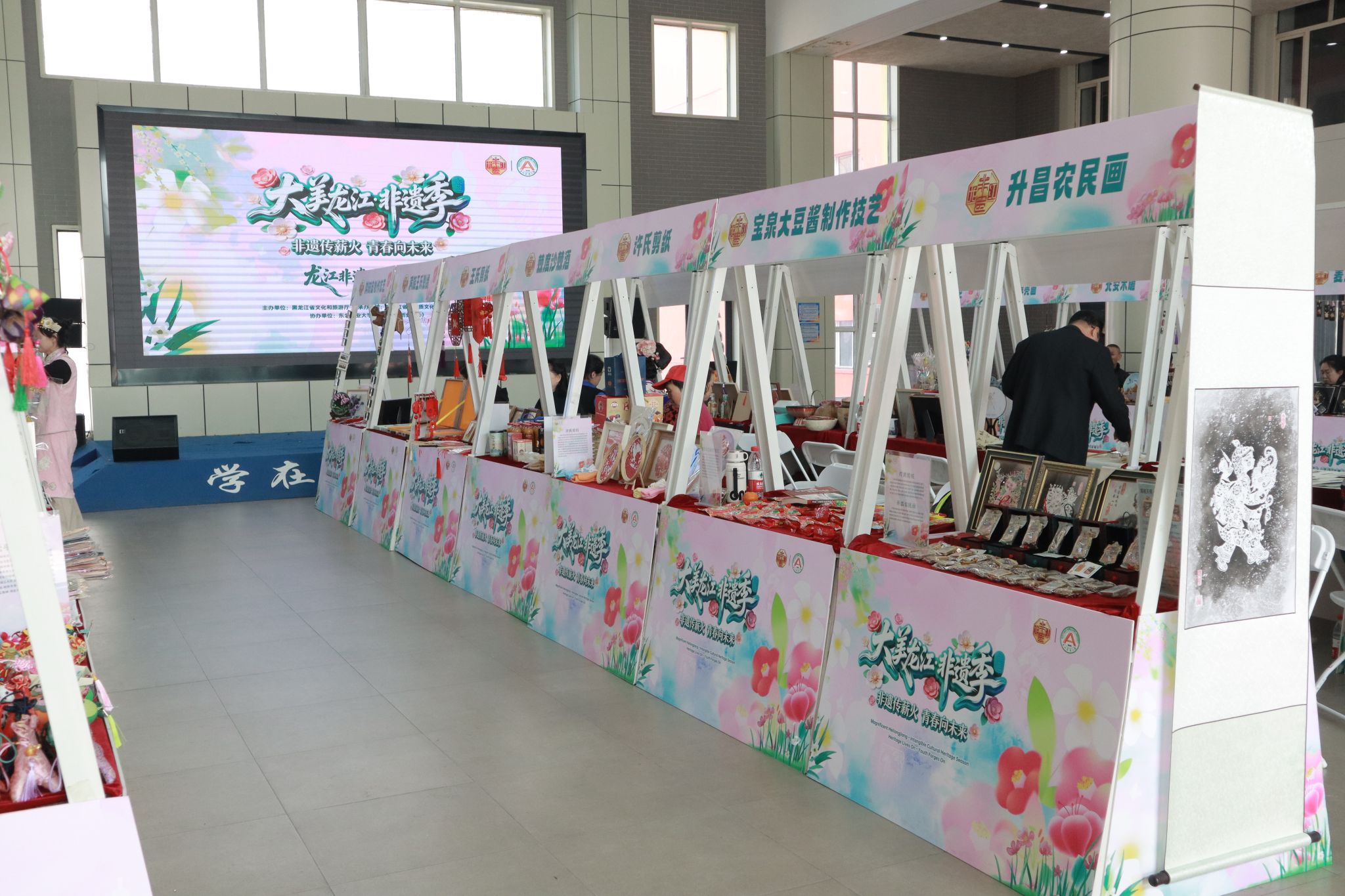 活动以实物陈列与图文解说相结合的形式,设置了30个非遗优秀项目展位,集中展示望奎皮影戏、鄂伦春族传统服饰、剪纸、金石派书法等传统技艺与文创精品。校内同步开设北大荒版画、麦秆制作技艺、灯熏剪纸技艺3门非遗技艺体验课,邀请非遗传承人面对面授课、实操互动,让学生在动手实践中感知非遗技艺中的美学意蕴与匠心精神。活动现场,学生社团代表、少数民族学生立足本民族文化根脉,探寻非遗技艺与民族文化的交融共鸣,在审美体验中促进各民族文化交流互鉴;留学生在沉浸式体验中读懂中华优秀传统文化的独特美感与深厚底蕴;“青马工程”学员走进金漆工艺课堂,以先锋行动践行美育使命。大学生艺术团现场带来特色文艺展演,以艺术化形式展现传统文化时代风采,让非遗之美在青春舞台上绽放光彩。