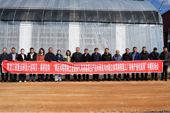 黑龙江省重点研发计划“揭榜挂帅”项目“寒区水稻育秧土全量替代育秧基质生产技术研发与水稻立体育秧智慧工厂装备产业化应用”中期现场会在北大荒集团建三江分公司七星农场召开