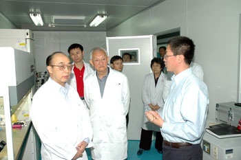 下午,专家组在包军副校长和刘忠华博士陪同下,到三元猪场现场观看克隆东北民猪以及绿色荧光蛋白转基因猪,听取了三元猪场董事长李玉田博士就双方合作进行的汇报及相关说明,曾溢滔院士、陈大元研究员、黄淑帧研究员先后对双方合作培育出的成果表示庆祝,希望合作可以持久、友好、互利,同时对猪场的相关设施和试验方面提出建议。
