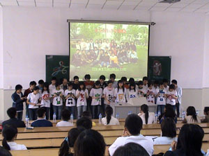 而后,报名参加奥运会志愿者的几名同学讲述了她们对青年志愿者的认识,并结合以情景剧的形式,用诙谐、幽默地手法演绎了志愿者工作时的场景,使同学们对志愿者有了更深刻认识。班长刘钢还针对奥运会的团队精神进行了发言,他回顾了过去两年里班级所取得的点滴成绩,以及同学们共经风雨、共同成长的历程,并斗志昂扬的激励全班同学为更辉煌的明天而战,吹响班级前进的号角,将整个会场的气氛推向了顶峰。最后,本次公开团活在全体同学《we are friends》的歌声中划上了圆满句号。会后,团委副书记高汉峰对本次团活进行了点评。