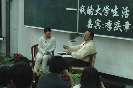 5月31日,大学生有线广播电台和《东农学子》编辑部联合组织的第二期“校园文化快车——我的大学生活论坛”在教学楼阶梯教室成功举办。李庆章校长应邀做客本期论坛,与同学们进行了一次特别的“心灵沟通”。参加论坛的还有校办主任王泽方、学工处处长解宗军、校团委书记李友善等。