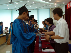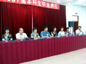 伴随着庄严的国歌声典礼拉开了序幕。副院长孔保华宣读了2007届获得学士学位的毕业生名单,党总支书记宋丽华宣读了省优秀毕业生名单。学院领导和教师向毕业生代表颁发毕业证书、学位证书。典礼上,教师代表韩翠萍对毕业生表达了殷切希望和美好的祝福;毕业生代表张丽在发言中感谢母校的悉心培养与关怀,誓为母校争光并祝福母校再创辉煌;在校生代表王卓然真诚的话语道出了对毕业学长们的深深祝福;院长江连洲向全体毕业生表示祝贺,祝贺他们顺利毕业,同时也希望食品学子能够传承东农精神,发扬食品人艰苦奋斗、自强不息的精神,为自己的人生增光添彩。