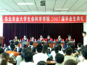 6月22日上午,生命科学学院在生命中心四楼会议室举行2007届本科生毕业典礼,225名学生顺利毕业。生命科学学院党总支书记高继国、院长胡宝忠、副院长苍晶教授、黑龙江省特聘教授朱延明、动物生物技术系主任严云勤、生物化学与分子生物学系主任高学军以及学院各党支部书记、教研室主任以及教师代表出席典礼。典礼由副院长苍晶主持。