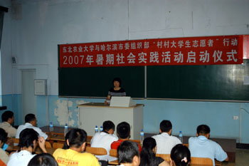 首先,校团委书记李友善宣读《2007年黑龙江省大中专学生志愿者暑期文化科技卫生“三下乡”社会实践的通知》和《2007年东北农业大学大学生志愿者暑期“三下乡”社会实践活动的实施方案》,就我校今年暑期社会实践工作进行了全面部署。