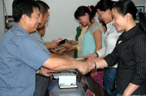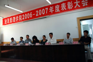 在庄严的国歌声中,表彰大会拉开了帷幕。副院长李翠霞宣布了关于表彰2006—2007学年度先进党支部、优秀共产党员、优秀党务工作者和“三育人”先进个人的决定。学院决定,对国家级、省级、校级表彰的先进集体和优秀个人给予一定的物资奖励,对学院表彰的先进集体和优秀个人授予奖状、荣誉证书和奖品。