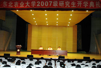 会上,李庆章校长向2007级新同学表示祝贺。他谈到:今年是国家恢复高考30周年,也是国家恢复研究生招生考试29周年。29年来,我校的研究生教育励精图治,奋发有为,各项事业均取得了长足的发展。特别是近几年来,学校的研究生教育取得了突出的成绩。研究生学院的成立,为学校研究生教育提供了广阔的发展空间;学科实力的稳步提高,为学校研究生教育提供了坚实的学术保证;研究生教育中心的投入使用,为学校研究生教育提供了良好的物质基础。在未来的几年里,大家将在东农这所科学殿堂里,追求学问,提升素质,增长才干,谱写人生旅途最华美的乐章。同时,李校长还向新同学提出了三点希望:要处理好“德”与“才”的关系;继续弘扬“艰苦奋斗,自强不息”的东农精神;尽早明确研究方向、不断提高创新能力。