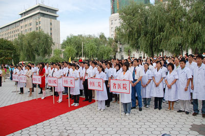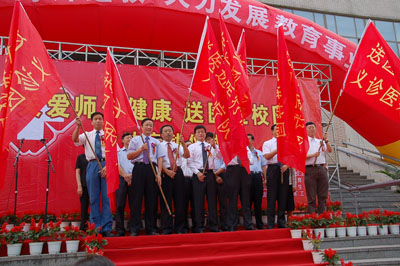 2007年9月7日上午8:30分,省委宣传部、省委高校工委、省教育厅、省卫生厅、省教育工会联合举办的“关爱师生健康,送医进校园”活动起动仪式在哈尔滨工业大学图书馆门前举行,省政府副省长程幼东,哈尔滨工业大学党委书记郭大成,省委宣传部常务副部长潘春良,省卫生厅厅长李斌,省总工会常务副主席陈维奇,省委高教工委副书记、省教育厅副厅长赵敏,哈尔滨工业大学党委副书记、工会主席崔国兰出席了启动仪式。我校工会、校办、人事处、宣传统战部、校医院等部门同志由工会主席刘德深带队,参加了本次启动仪式。哈工大党委书记郭大成、省委宣传部常务副部长潘春良、哈医大附属第一医院党委书记李为民在启动仪式上发表讲话。“关爱师生健康,送医进校园”活动的开展作为第二十三个教师节献礼,集中贯彻了胡总书记《在全国优秀教师座谈会上讲话》精神,倾注了全省职能部门对教师和学生的关爱。开展此项活动可以帮助解决师生因课业繁忙、无暇进医院检查而贻误病情的问题,是利于教育的一项义举,是党和政府为教师办的一件实事。随后与会领导向参加仪式的省医院、中医院等知名医院的专家医疗队进行授旗仪式。(撰稿/贺莉莉 摄影/霍晨光)