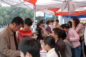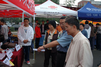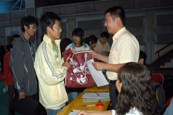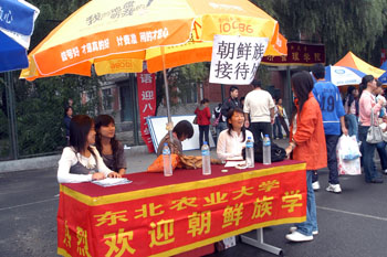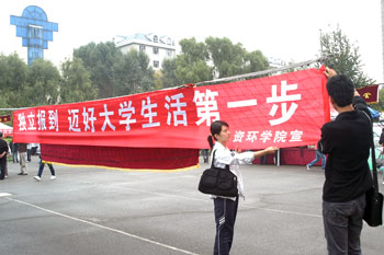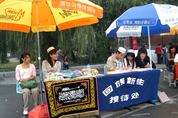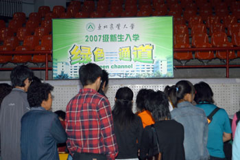 在新生报到处,我校还可以看见“朝鲜族接待处”、“回族新生接待处”等,经了解,这是我校学生会组织的特殊接待处,目的是为了将来与这些少数民族联系方便,可以及时为他们提供方便和照顾。