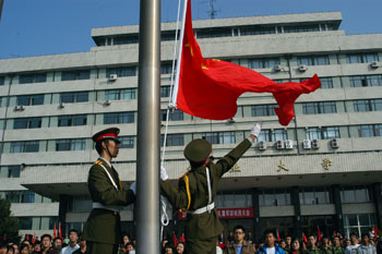 9月17日8:30分,我校2007级新生开学典礼暨军训动员大会在主楼广场隆重召开。校长李庆章,副校长张长利、刘荣,校纪检委书记李潮江,校工会主席刘德深等校领导及校长助理董广芝、徐建成,各学院和有关职能部门领导、教师代表以及苏宁团承担此次新生军训任务的全体教官参加了会议。