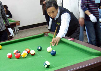 开幕式后,各队选手开始了激烈角逐。据悉,此次大赛由省教育系统老年台球协会主办、我校离退休工作处承办,为期三天。共有哈尔滨工业大学、东北农业大学、黑龙江科技学院、哈尔滨医科大学、牡丹江师范学院等16个代表队参赛。比赛采用“美式普尔”标准规则,采取团体对抗的形式,每队有5名参赛选手,第一阶段进行分组单循环赛,第二阶段采用交叉淘汰赛的形式决出名次。