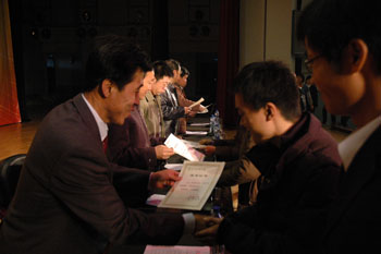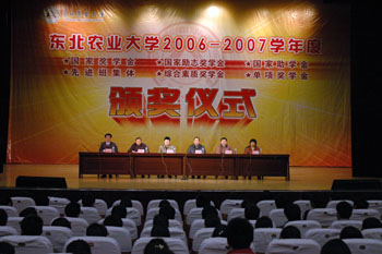 秦智伟副校长宣读了我校《关于颁发2006—2007学年度国家奖学金、国家励志奖学金的决定》:奖励童佩等39名学生每人8000元国家奖学金;奖励孟程博等542名学生每人5000元国家励志奖学金。纪委书记李潮江宣读了我校《关于表彰2006—2007学年度国家助学金的决定》:资助李彬等859名学生每人3000元一等国家助学金;资助杨超等1717名学生每人2000元二等国家助学金;资助李情等2576名学生每人1000元三等国家助学金。校长助理董广芝宣读了学校《关于表彰2006—2007学年度学生先进集体和优秀个人的决定》:学校授予经济管理学院工商管理专业061班等36个班级先进集体称号;授予张慧清等522名学生“优秀三好学生”称号;授予王辉等1073名学生“三好学生称号”;授予研究生学院路伟明等47名学生“三好研究生”称号;授予张少坤等66名学生“优秀研究生干部”称号。校长助理徐建成宣读了我校《关于颁发2006—2007学年度学生单项奖学金的决定》:奖励王辉等535名学生每人1000元学习优秀奖学金;奖励张慧清等431名学生每人500元优秀学生干部奖学金;奖励贾婷婷等205名学生每人100元社会实践奖学金;奖励杨宇光等34名学生每人200元科技创新奖学金;奖励窦长永等20名学生每人200元外语优秀奖学金;奖励杜柏杨等9名学生每人200元宣传积极分子奖学金;奖励侯秀美等17名学生每人200元运动标兵奖学金;奖励曲艳宁等9名学生每人200元文艺骨干奖学金;奖励吴新杰等10名学生每人2000元经济困难学生自立自强奖学金。与会领导为受到表彰的先进集体、先进个人及获奖学生颁发了荣誉证书。