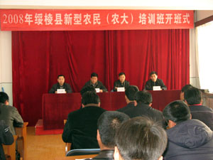 3月11日上午,绥棱县30名新型农民来到我校,参加了管理干部学院举办2008年绥棱县新型农民实用技术人才暨马铃薯种植技术培训班。绥棱县委组织部、农委、县委人才办及管理干部学院的有关领导出席了开班式。