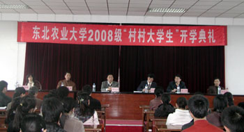 3月28日上午,2008级“村村大学生计划”新生开学典礼隆重召开。校长李庆章,校长助理徐建成,高等农业教育发展研究所副所长于广建,应用技术学院院长梁云福,应用技术学院副院长周慧秋、林洪金等领导及教师代表参加会议。会议由周慧秋副院长主持。