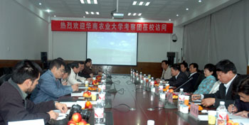 李庆章校长介绍了我校在经费管理、校园资源管理、教学科研基地管理和后勤服务管理等方面的整体情况、主要做法和相关经验。华南农业大学校长陈晓阳对我校的做法和经验给予了高度评价。会上,双方领导还就具体事项进行了深入交谈。