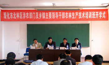 5月24日上午,绥化市北林区涉农部门及乡镇主要领导干部农林生产技术培训班在我校开班,开班式在东北农业大学试验实习基地举行。绥化市北林区及管理干部学院的有关领导出席开班式。