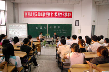 马凤鸣教授以自己的业余爱好——诗歌的创作为线索,与在场同学分享了自己的读书、实践和人生的经历。马老师在求学之路上的辛勤耕耘、在学术研究上的孜孜不倦、在教书育人上的不懈探索、在诗歌创作上的真挚执着以及他含蓄幽默的言语,深深感动了在场的每一位观众,博得了阵阵热烈的掌声。