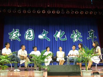 6月16日晚6时,由校学生会举办的《校园文化快车》——“名校之约”考研精英访谈会在图书馆一楼会议厅举行。访谈会邀请了我校应届毕业生中考取清华大学、北京大学等学校硕士研究生的7名学生,与600余名师生畅谈了考研的经历、经验和感受。访谈会现场座无虚席,教务部部长于泽源,校团委书记李友善、副书记高汉峰出席了访谈会。访谈会由校学生会主席石波罗主持。
