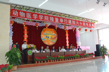 副校长郑秋鹛,省委办公厅机要局局长曾庆恒,省首席兽医官、畜牧局副局长李书华,哈尔滨兽医研究所党委书记姜维民、所长孔宪刚,省出入境检验检疫局副局长罗公平;原东北农学院党委书记王文超,原东北农业大学校长刘文周;动物医学学院党总支书记魏萍、院长郑世民,我校各部、处、院领导及各兄弟院校同仁、各友好单位的领导和来宾、全国各地校友欢聚一堂,共同庆祝动物医学学院建院六十周年。动物医学学院党总支书记魏萍主持大会。