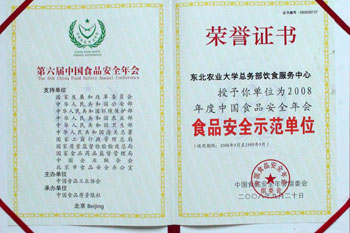我校饮食服务中心被中国食品安全年会组委会授予食品安全示范单位