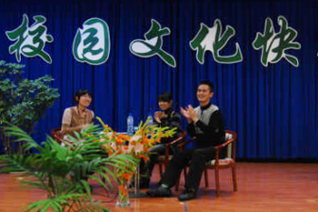 最后,两名同学就“在建设有中国特色社会主义道路上我们应承担的使命”、“如何安排课余时间”、“如何处理好学习与工作的关系”、“如何丰富大学生活,把握机遇,提高能力”等问题结合自身经历进行了解答,并向学校和同学们送上了最真诚的祝福。