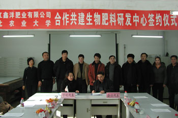 黑龙江鑫洋肥业有限公司自2001年与东北农业大学资源环境学院徐凤花教授进行合作,在多年合作基础上,为使合作不断深入与延伸,共建研发中心、产业基地。依托研发中心这一载体和平台,加快科生物类研成果转化与产业化,提升科技创新能力、产品研发能力,进一步促进高校与企业发展。