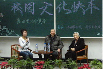 12月19日晚5时30分,主题为“麦田守望者”的校园文化快车在教阶一举行。做客本次快车的嘉宾是“东农冬麦1号”育种完成人佟明耀教授及其夫人郑家兰老师,校老科协会长李英、校团委副书记于兴业及近200名学生参加了本期快车。