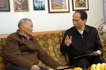 1月19日上午,省委书记、省人大常委会主任吉炳轩在我校党委书记徐梅的陪同下走访慰问了我校工程院院士蒋亦元。