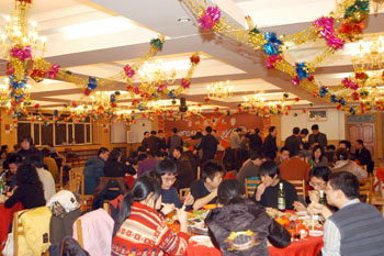 在这个学生食堂,学校还为广大未回家学生开通两部“亲情热线电话”,免费让同学与家人通话联系。据悉,今年学校从年三十开始,将为这些未回家的学生提供三天的免费年饭,以使同学过上年味十足的春节。