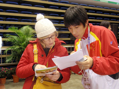我校2008年9月就被借调到大冬会志愿者工作部工作的高放老师