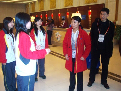 上午10时,王淑滨书记一行来到华旗饭店、农垦大厦看望慰问我校志愿者,并表示自从志愿者上岗服务以来,社会各界都对我校主责工作给予了很好的评价,志愿者通过优质、高效的服务赢得了运动员、工作人员和官员的肯定。她代表大冬会志愿者工作部对大家表示慰问和感谢。她说,志愿者为大冬会付出了辛勤的劳动,为大冬会做出了突出的贡献,现在大冬会赛事已经过半,希望全体志愿者再接再厉,在大冬会余下的几天里继续努力工作,提供优质的服务。