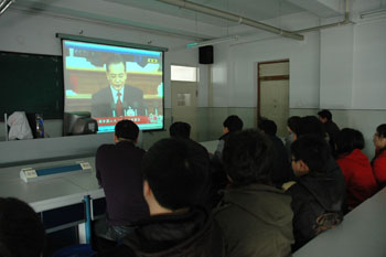 日前,第十一届全国人民代表大会二次会议、全国政协第十一届二次会议在京召开。3月5日,我校组织全校师生广泛收看温家宝总理政府工作报告现场直播盛况。