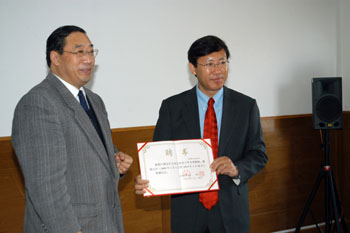 聘任仪式在主楼306会议室进行。校党委书记徐梅主持仪式,李庆章校长代表学校向潘忠礼教授、张瑞红教授颁发了聘书,并向他们赠送了纪念品。省人大常委会原副主任、省欧美同学会长董浩出席聘任仪式并讲话。中国工程院院士蒋亦元向与会同志介绍了他的两位杰出弟子潘忠礼教授、张瑞红教授的基本情况。