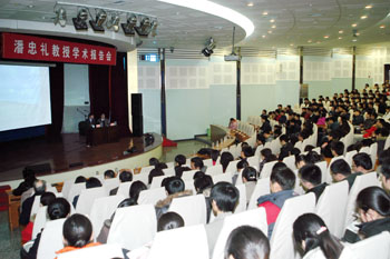 下午,潘忠礼教授在新图书馆一楼会议厅为全校几百名师生作了题为《农业发展目前所面临的挑战与机遇及科学技术的贡献》的报告,同时讲述了他的求学经历和多年来从事科研工作的感受,报告深入浅出、内涵丰富,对于广大师生深入了解当前世界农业科技发展的前沿态势,进一步开阔思路和眼界,必将起到积极的促进作用。潘忠礼教授还现场回答了广大师生的提问。报告会由李庆章校长主持。