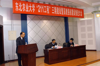 最后,党委书记徐梅对学校“211工程”三期建设暨“高教强省”建设工作提出三点要求:一是要进一步增强开拓进取意识,要面向高等教育发展的新形势和新要求大胆创新,不能安于现状、消极懈怠,要总结好前两期“211工程”建设的经验,做好长期艰苦奋斗的准备。二是要增强责任意识,重点投资建设项目负责人要本着对党和国家事业高度负责的态度,为全校教职工做好表率,扎扎实实开展好“211工程”三期建设。三是要树立精品意识,努力创造出一批站得住、叫得响的标志性成果,对于学校重点投资计划外产生的好项目学校也会给予扶持。徐梅书记希望全校教职员工在工作中能继续发扬“艰苦奋斗 自强不息”的东农精神,要耐得住寂寞,吃得了辛苦、守得住平淡,扎扎实实地落实好各项工作任务。