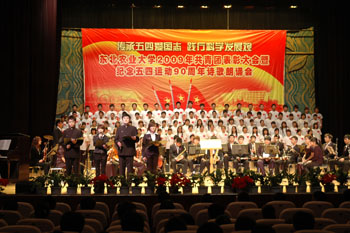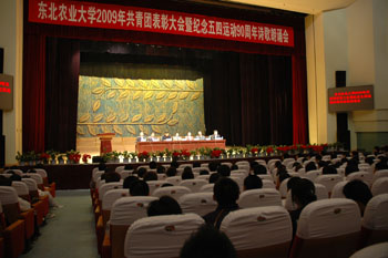 最后,受表彰的先进集体、个人代表宣读了“传承五四爱国志 践行科学发展观”倡议书。表彰大会在全场齐唱《中国共产主义青年团团歌》中结束。