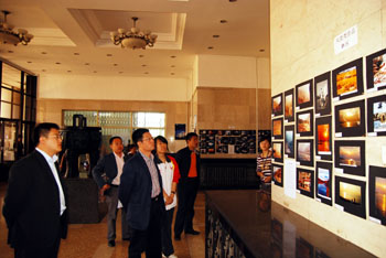 5月4日,由校团委主办的“东农学子杯”大学生摄影比赛部分优秀作品在主楼大厅展出。校党委副书记胡国良在校团委书记徐国峰,学生工作处副处长张铁,校团委副书记于兴业、高放的陪同下观看了展览。