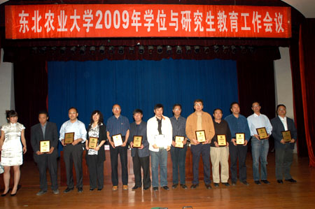 副校长张长利宣读了《东北农业大学关于奖励2008年优秀研究生导师的决定》和《关于黑龙江省第四届优秀硕士学位论文评选结果的通知》;校党委副书记胡国良宣读了《关于颁发东北农业大学2007年度研究生奖学金的决定》和《关于颁发东北农业大学2007年度优秀学位论文奖、优秀学位论文指导奖的决定》。