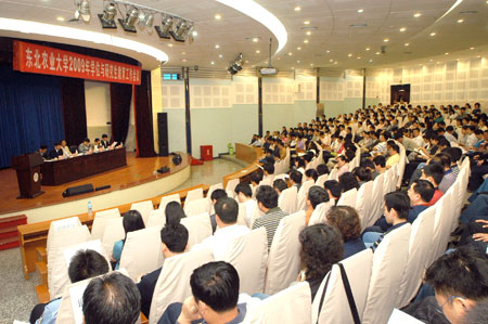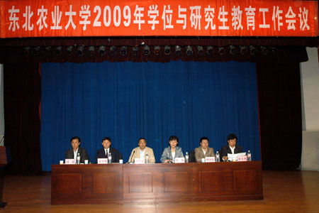 5月8日,我校在新图书馆一楼会议厅召开2009年学位与研究生教育工作会议。校党委书记徐梅,校长李庆章,党委副书记胡国良,副校长秦智伟、张长利、刘荣以及全校副处级以上干部,各级重点学科带头人(负责人)及学术骨干,全体研究生导师,各学院研究生教学秘书、研究生督导,研究生代表等出席会议。校党委书记徐梅主持会议。