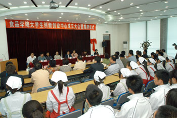5月19日中午,食品学院大学生创新创业中心成立大会暨揭牌仪式在食品楼三楼会议室隆重举行,我校第一个大学生创新创业中心正式成立。