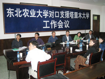 5月11日,由副校长郑秋鹛带队,我校赵奎军、霍贵成、魏湜、陈海涛、卢铁光、韩文灏等一行七人前往新疆塔里木大学,进一步落实我校对口支援塔里木大学学科建设工作。此次援建工作是根据教育部《关于进一步深入开展对口支援西部地区高等学校工作的意见》(教高{2006}12号)要求和 “塔里木大学2009年对口支援需求”确定的,学校领导高度重视此项工作,确定了“深入学习实践科学发展观,积极主动,认真完成援疆学科建设各项任务”的中心思想。在为期三天的时间里,郑秋鹛副校长等七位同志针对两校达成的09年对口支援项目逐一落实,圆满完成了预计的工作任务: