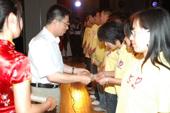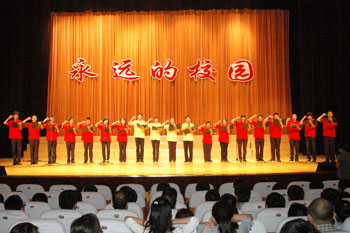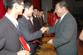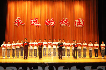 6月18日晚,我校欢送2009届毕业生晚会在音乐厅隆重举行。校长李庆章、校党委副书记胡国良出席晚会并为毕业生代表颁奖,学生工作处处长解宗军,校团委书记徐国峰,以及部分职能部门领导、各学院主管学生工作的书记、2009届毕业班辅导员及毕业生代表1000余人观看了晚会。